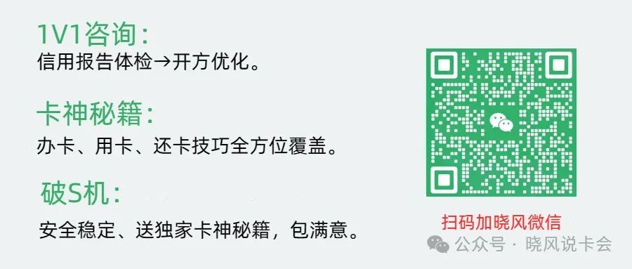 最后,大家如果对玩卡感兴趣,可以找晓风领取一本《卡神秘籍》,该秘籍只送不卖,用卡过程遇到疑惑,也欢迎找晓风交流。